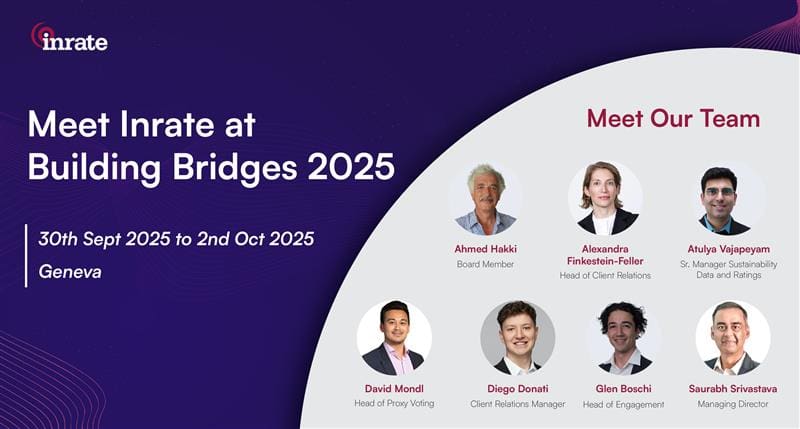 Inrate is pleased to sponsor Building Bridges 2025, Switzerland’s leading event connecting finance, policy, business, and civil society to drive the sustainable finance agenda.